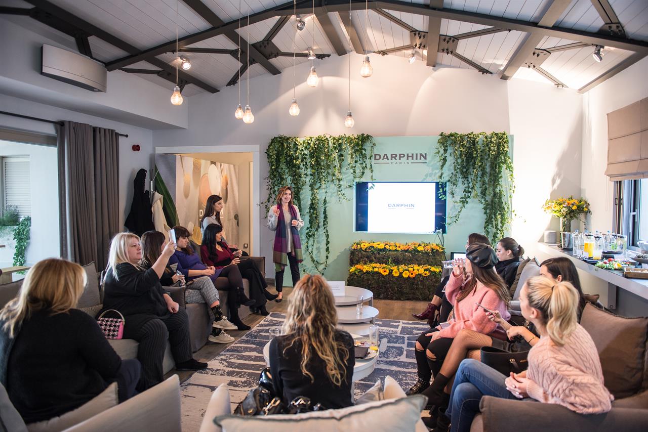 Σε ένα guesthouse που είχε διακοσμηθεί ώστε να θυμίζει πρωινό περίπατο σε ανοιξιάτικο κήπο, η Όλγα Φούρναρη (Marketing Manager Balkans, Darphin & Origins) και η Δανάη Κριμπένη (Product Manager, Darphin & Origins) καλωσόρισαν τις καλεσμένες. Εξηγώντας τους γιατί είναι απαραίτητο να φροντίζουμε για την αποτοξίνωση της ομορφιάς, παρουσίασαν τον ρόλο της Darphin στη νέα πρόκληση. Αποστολή των καλλυντικών δεν είναι πλέον μόνο να ενυδατώνουν, αλλά να συμβάλουν στην αποτοξίνωση του δέρματος σε συνδυασμό με τον διαλογισμό και τα experiential rooms ώστε να καταπολεμήσουμε το καθημερινό άγχος καθώς και τη γήρανση που υφίσταται το δέρμα εξαιτίας του.