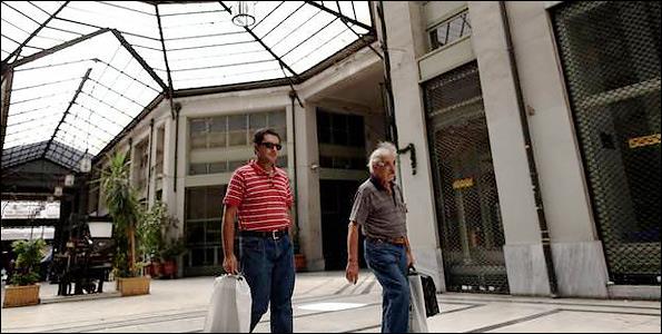 Στοά Ειρηνοδικείου: Μια από τις ομορφότερες ημι-εγκαταλελειμμένες στοές, η Στοά του Ειρηνοδικείου, στη Λυκούργου 10, χτυπήθηκε επίσης από την εγκληματικότητα της περιοχής με αποτέλεσμα το 90% των καταστημάτων της να κλείσει. Μετά την μετακόμιση του Ειρηνοδικείου το 2010 και τα σχέδια ανακαίνισης που έπεσαν θύμα της κρίσης, η στοά –που είχε στο μεταξύ μετατραπεί σε έναν ακόμα χώρο αγοραπωλησίας ναρκωτικών στα πέριξ της Ομόνοιας– απλώς κλείνει με σιδεριές το απόγευμα, ενώ την ημέρα φιλοξενεί μόνο δύο τσαγκάρηδες, ένα χρυσοχοείο και ένα τυροπιτάδικο. Δείτε