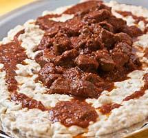 Κοκκινιστό μοσχάρι με πουρέ μελιτζάνας (Χουνκιάρ Μπεγεντί)