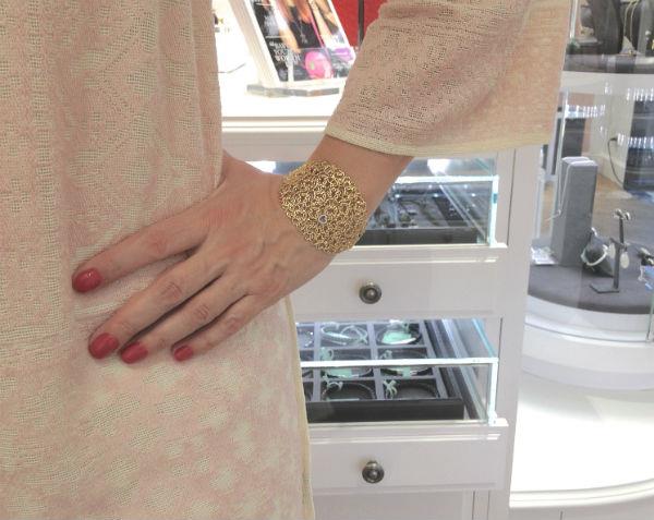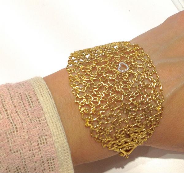 Το βραχιόλι που φοράω είναι από την κλασική σειρά Milosos, που σημαίνει «χίλια αρκουδάκια» και πήρε το όνομά της από τον τρόπο που το χαρακτηριστικό σύμβολο της TOUS πολλαπλασιάζεται, δημιουργώντας ένα εφέ  «δαντέλας». Αυτή τη σεζόν η σειρά εξελίσσεται με δημιουργίες από χρυσό 18Κ και μια μικρή διαμαντένια καρδιά στο κέντρο να χτυπά δυνατά, ανεβάζοντας τους παλμούς.