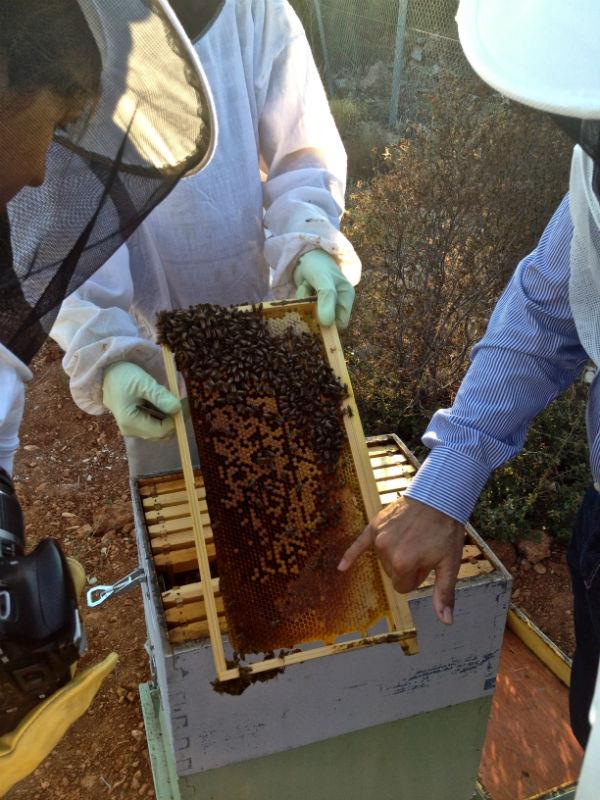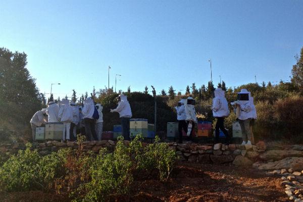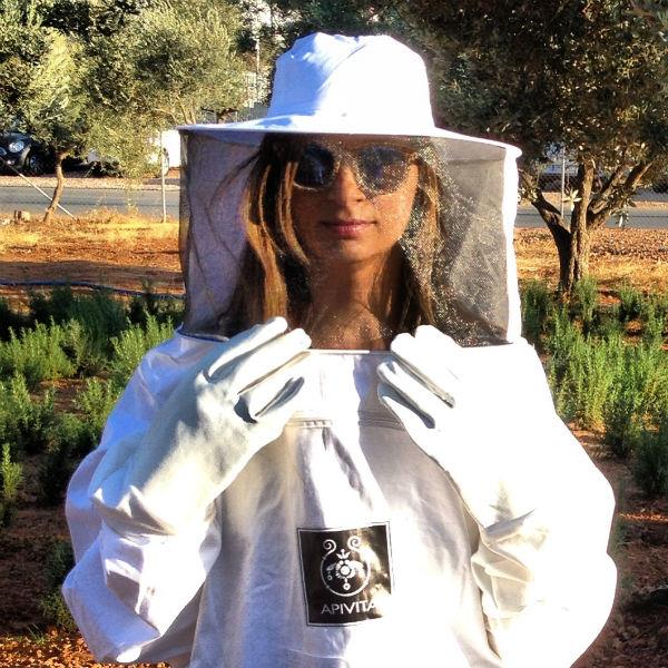 Φορώντας ειδική στολή, επισκεφτήκαμε τα μελίσσια και είδαμε από κοντά τις κυψέλες και τον τρόπο παραγωγής μελιού!
