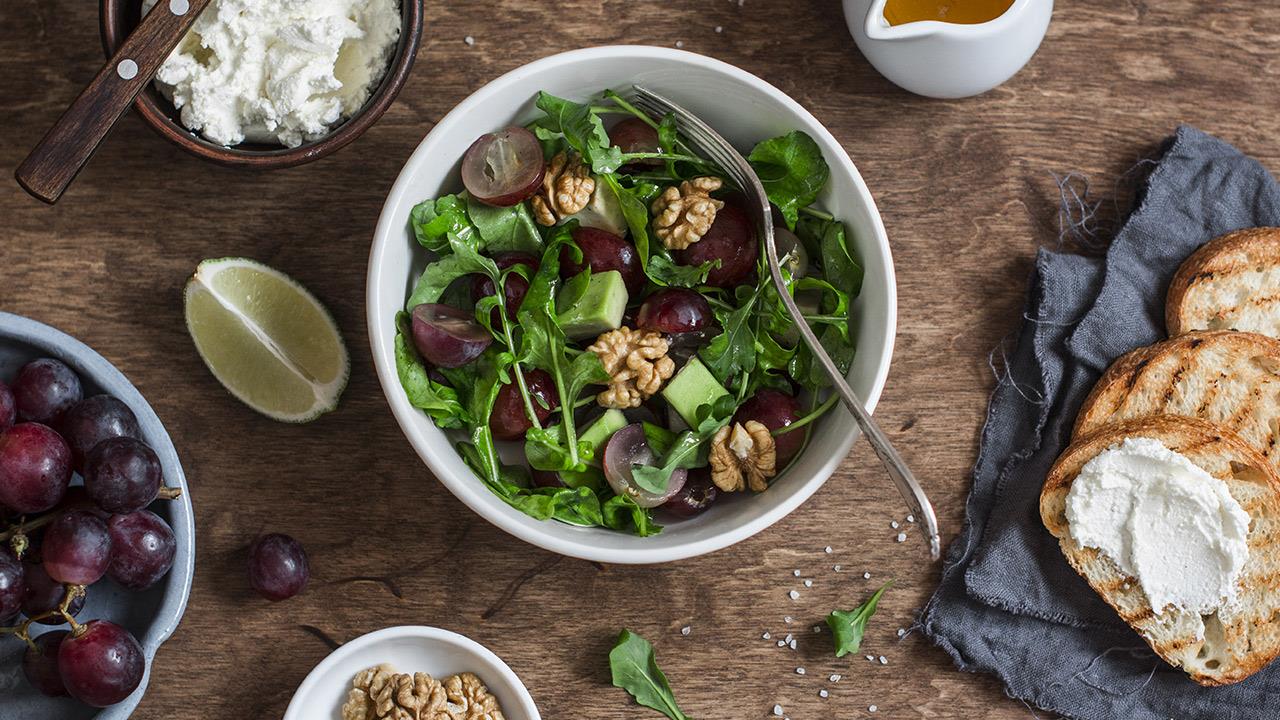 Θρεπτικό lunch bowl με σιτάρι, σταφύλια, σύκα & κατσικίσιο τυρί