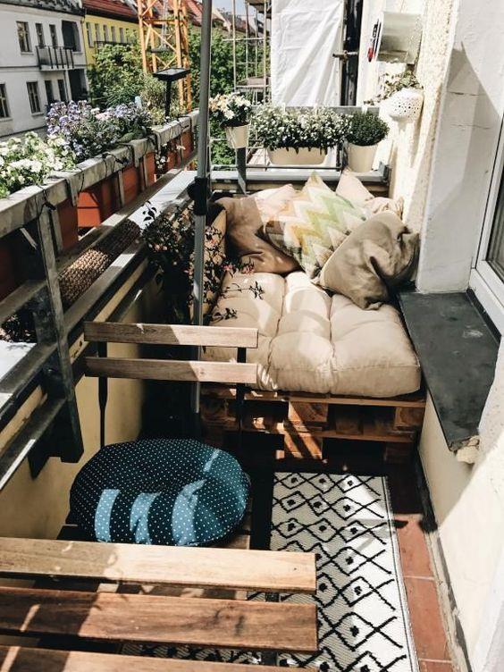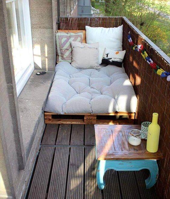 Να, δυο παλέτες ας πούμε, κομμένες ακριβώς στο πλάτος του μπαλκονιού σου, κάνουν το τέλειο καναπεδάκι.