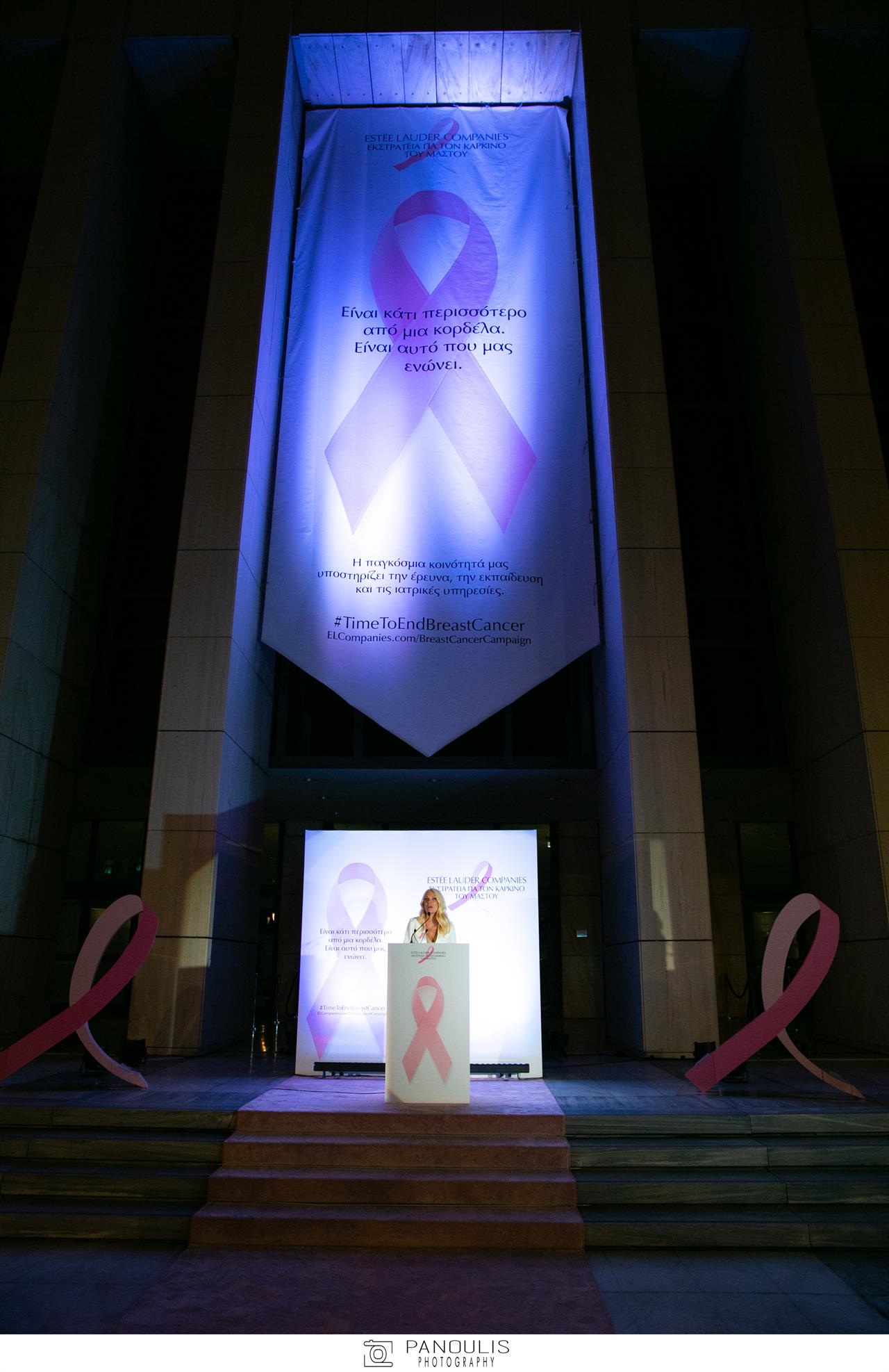 Στο πλαίσιο της εκδήλωσης, σύντομο χαιρετισμό απηύθυνε και ο Πρόεδρος της Ελληνικής Αντικαρκινικής Εταιρείας, κ. Φιλόπουλος, ευχαριστώντας θερμά την ευγενική χορηγία του Ομίλου Estée Lauder Companies, και της προσφοράς όλων των εσόδων από τις πωλήσεις του Pink Ribbon Bracelet, που σχεδίασε και φέτος ο γνωστός σχεδιαστής Δούκας, ώστε η ΕΑΕ να έχει την οικονομική δυνατότητα να κινεί τη μονάδα κινητού μαστογράφου. «Έχουν γίνει 1500 μαστογραφίες μέχρι στιγμής σε όλη την Ελλάδα, αλλά σας υπόσχομαι ότι σύντομα θα φτάσουμε τις 2200. Το έχουμε βάλει πείσμα, ότι οι δυσκολίες της τρέχουσας συγκυρίας δε θα μας σταματήσουν. Από εκεί και πέρα, θα προσπαθήσουμε να είμαστε ακόμα πιο αποδοτικοί του χρόνου», ανέφερε.