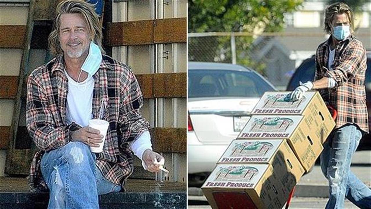 Αγνώριστος Μπραντ Πιτ με μάσκα μοιράζει τρόφιμα