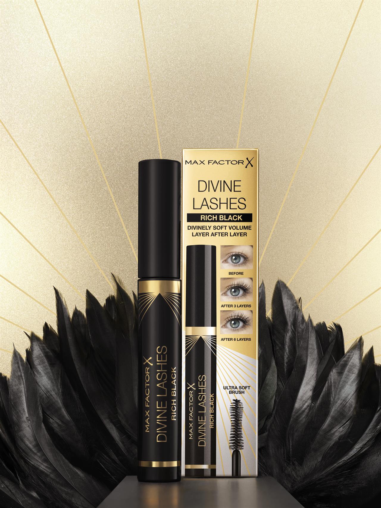 Το μυστικό για μία άψογη εμφάνιση είναι η mascara Masterpiece Divine Lashes που προσφέρει πλούσιο όγκο που διαβαθμίζεται δίνοντας στις βλεφαρίδες φυσικά εντυπωσιακό αποτέλεσμα χωρίς κόμπους. Ακόμα, το απαλό βουρτσάκι και η απίστευτα κρεμώδης σύνθεση κάνουν την εφαρμογή ακόμη πιο εύκολη, προσφέροντας μία ιδιαίτερα ανάλαφρη αίσθηση ακόμα και ύστερα από πολλές εφαρμογές.