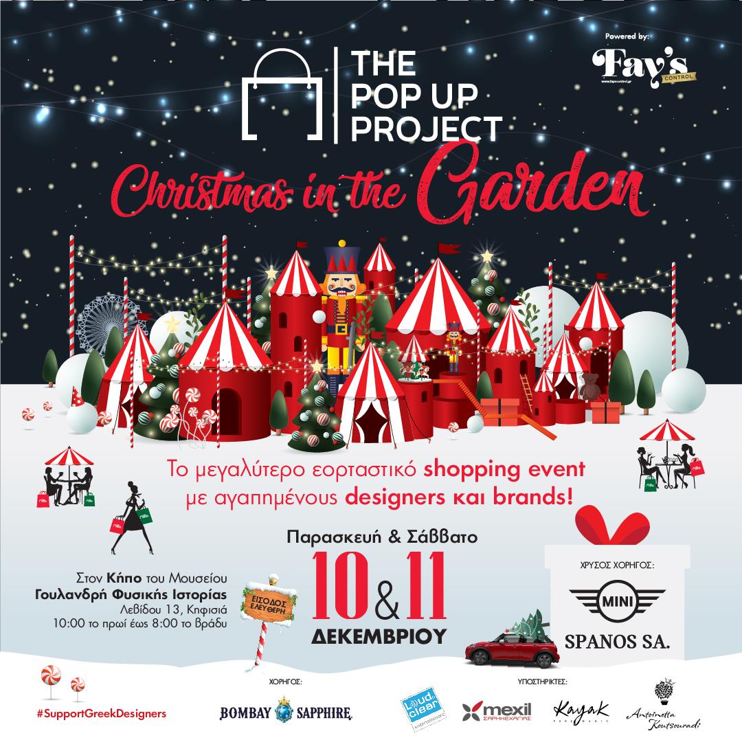 Με τον χαρακτηριστικό τίτλο “Christmas in the Garden”, το The Pop Up Project θα πραγματοποιηθεί την Παρασκευή 10 και το Σάββατο 11 Δεκεμβρίου, στο απόλυτα ασφαλές περιβάλλον του Μουσείου Φυσικής Ιστορίας Γουλανδρή. Με παραμυθένιες τέντες και κομψές σόμπες, με μαγικά κάλαντα να απλώνονται από άκρη σε άκρη του φωτισμένου με εκατομμύρια λαμπιόνια κήπου, οι W22 συλλογές των 50 Ελλήνων σχεδιαστών & brands θα σας περιμένουν να επιλέξετε τις καλύτερες δημιουργίες τους για τις γιορτές και τα φετινά σας δώρα. Όπως πάντα, θα είναι οι ίδιοι εκεί, για να σας ξεναγήσουν προσωπικά στις ομορφότερες δημιουργίες τους και να σας βοηθήσουν να επιλέξετε τις καλύτερες για το στιλ σας.