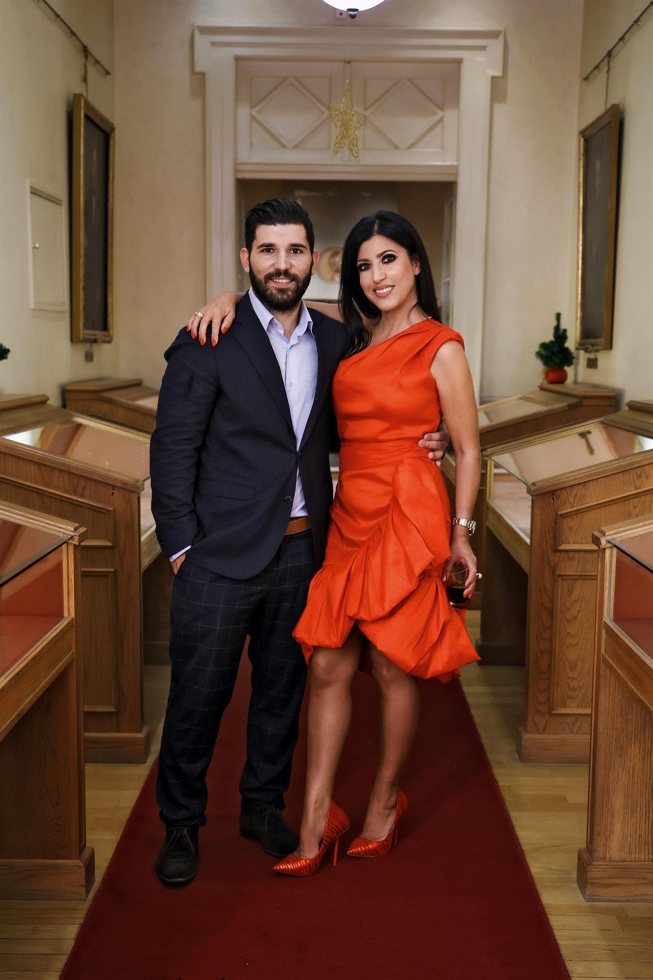Η οικοδέσποινα χαμογελαστή και περιποιητική όπως πάντα , υποδέχθηκε τους καλεσμένους της φορώντας ένα κατακόκκινο φόρεμα και ασορτί γόβες, γιατί το κόκκινο είναι το χρώμα των Χριστουγέννων. Φυσικά, ο αγαπημενος της σύζυγος Στέλιος Αγγελίδης ήταν όπως πάντα στο πλευρό της, καθώς και τα παιδιά της, ο Δημήτρης Αραπκίλης και ο Αγάπιος Αγγελίδης.