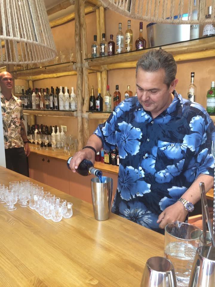 Το ντεμπούτο του έκανε με την εμφάνιση bartender. Με πουκάμισο Maui που θα ζήλευε φασαίος σέρφερ της Ικαρίας, ο Πάνος αυτή τη φορά δεν διδάσκει αθλητικό ήθος, αλλά ευ ζην.