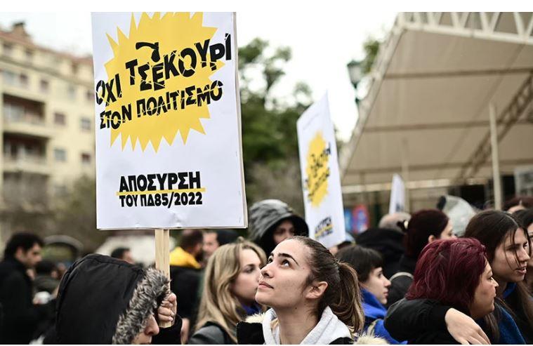 Η πολυπληθής συγκέντρωση ξεκίνησε από το Πεδίο του Άρεως, και εν συνεχεία κατευθύνθηκε προς το Υπουργείο Παιδείας, με πανό και συνθήματα όπως «όχι τσεκούρι στον πολιτισμό». Οι καλλιτέχνες ζητούν την απόσυρση του ΦΕΚ που προβλέπει υποβάθμιση των πτυχίων τους.