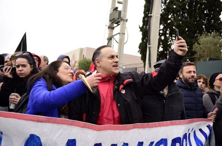 Στην πορεία διαμαρτυρίας ενάντια στην εξίσωση των πτυχίων δραματικών σχολών με απολυτήρια λυκείου έδωσε το παρών και ο Βασίλης Μπισμπίκης.