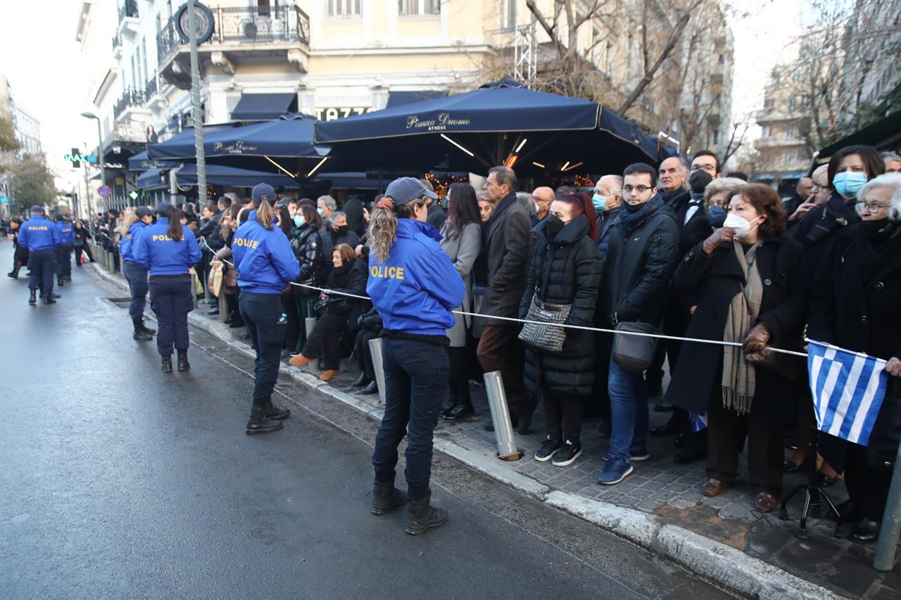 Απίστευτες ουρές σχηματίστηκαν από τη Μητρόπολη ως την Καπνικαρέα σήμερα το πρωί, καθώς πλήθος κόσμου έδωσε το παρών στην κηδεία του τέως βασιλιά.