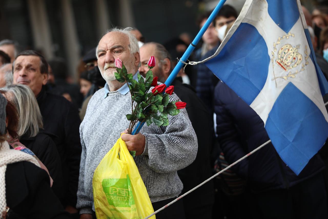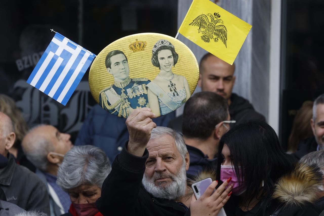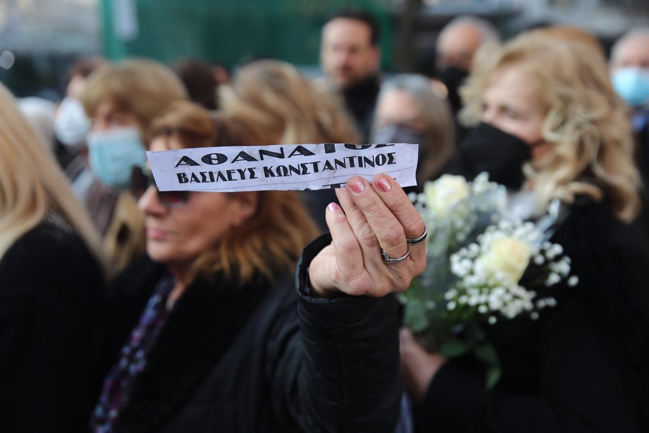 Πλήθος κόσμου συγκεντρώθηκε από τα ξημερώματα στην πλατεία της Μητρόπολης και τους γύρω δρόμους, για την κηδεία του τέως βασιλιά Κωνσταντίνου στο παρεκκλήσι του Αγίου Ελευθερίου.