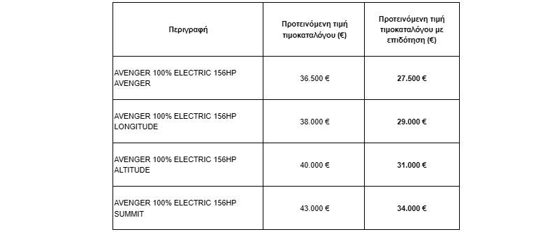 Ξεκίνησε η διαδικασία των παραγγελιών του νέου Jeep Avenger. Διαθέσιμο σε τέσσερα επίπεδα εξοπλισμού (Avenger, Longitude, Altitude και Summit). Όλες οι εκδόσεις εφοδιάζονται με ένα νέο, προηγμένο σύστημα ηλεκτροκίνησης, το οποίο εξασφαλίζει αυτονομία έως και 400 χλμ. σε μικτές συνθήκες (κύκλος WLTP) και 550 χλμ. σε αστικές συνθήκες.