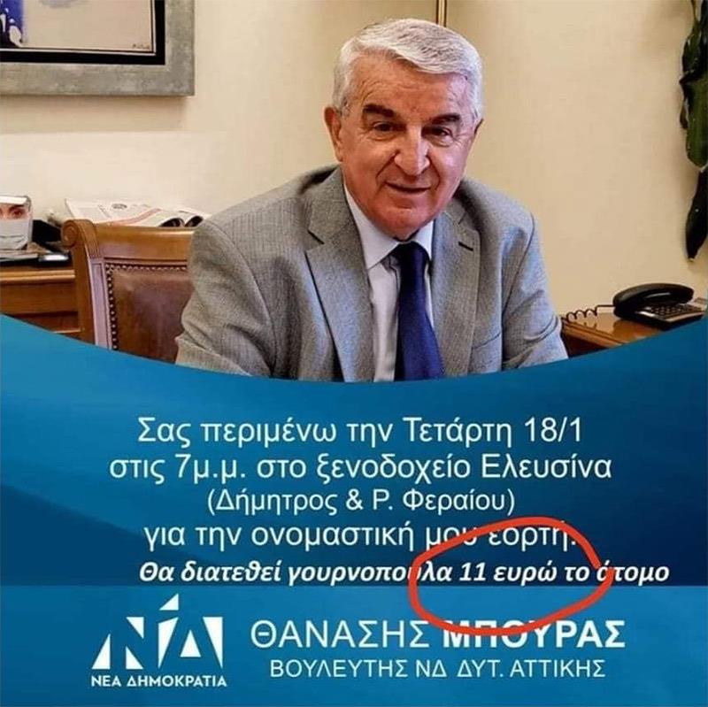 Θύμα φάρσας έπεσε ο βουλευτής της ΝΔ, Θανάσης Μπούρας, καθώς κάποια… τρολ παραποίησαν αφίσα εορταστικής εκδήλωσης για την ονομαστική του εορτή.