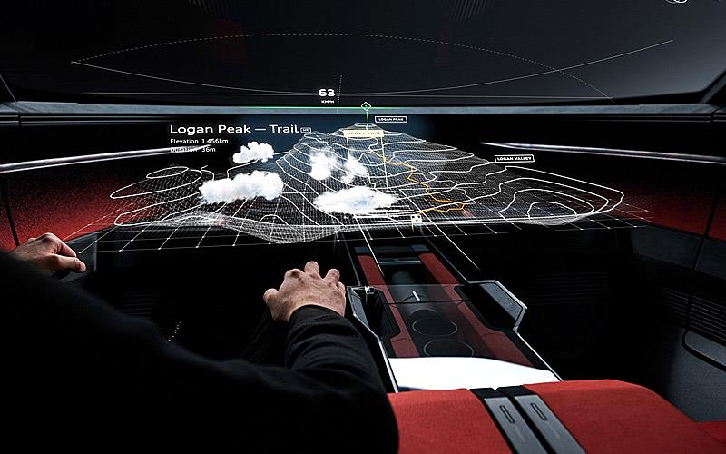 Το καινοτόμο Audi Dimension συνδυάζει τον φυσικό με τον εικονικό κόσμο (δηλαδή, κάτι σαν μία μικτή πραγματικότητα) προβάλλοντας ψηφιακό περιεχόμενο στα οπτικά πεδία των επιβαινόντων σε πραγματικό χρόνο. Τα high-tech ακουστικά προσφέρουν μια εικόνα του πραγματικού περιβάλλοντος και της διαδρομής, ενώ ταυτόχρονα εμφανίζουν περιεχόμενο 3D και διαδραστικά στοιχεία – τα οποία είναι ανεξάρτητα διαμορφώσιμα για οδηγούς και επιβάτες.