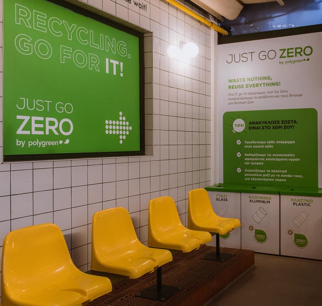 Σ’ αυτόν τον ολόφρεσκο χώρο το IT συνεργάστηκε με την Polygreen και εντάχθηκε στο πρόγραμμα Just Go Zero που έχει υιοθετηθεί τα τελευταία χρόνια από αρκετούς φορείς και επιχειρήσεις στη χώρα μας. Το πρόγραμμα συμβάλλει στην κυκλική διαχείριση των αποβλήτων τους, ενώ ειδικά στην περίπτωση του IT, «ευθύνεται», μεταξύ άλλων, και για την ανακύκλωση και την πλήρη αξιοποίηση του γυαλιού και των υπολειμμάτων καφέ που παράγει. Κάτι που συνάδει απόλυτα με την totally green προσέγγιση του IT, απέναντι στις κουζίνες του, καθώς όπως δηλώνει περήφανα η ομάδα του ομίλου: “IT is the zero waste movement! IT is time to act!”