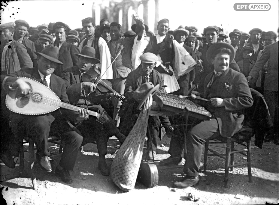Αποκριάτικο άρμα που αναπαριστά ταβέρνα μπροστά από το Ηρώδειο, 1915. Φωτογραφικό αρχείο του Πέτρου Πουλίδη (ΕΡΤ)