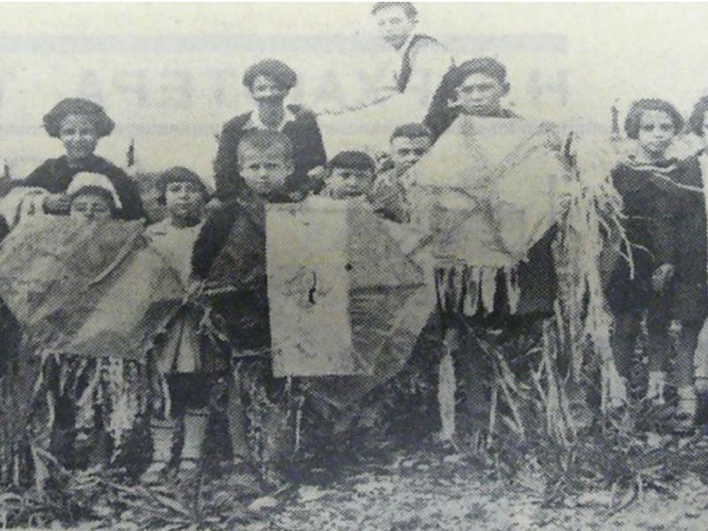 Παιδάκια κρατώντας χαρταετούς γιορτάζουν τα Κούλουμα στην Αθήνα το 1900.