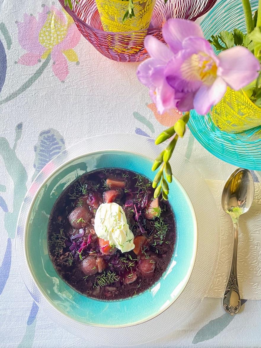 Τα χρόνια πέρασαν και η borscht είχε μείνει σαν ανάμνηση κι από ανάμνηση έγινε πρότζεκτ όταν, μιλώντας με τη φίλη μου Θάλεια Τσιχλάκη, πασίγνωστη δημοσιογράφο και κριτικό γεύσης, μου είπε πως στο πατρικό της σπίτι έφτιαχναν συχνά borscht, γιατί η γιαγιά της που καταγόταν από την Καβάλα, είχε μια συνταγή από τις πάμπολλες που υπάρχουν σε όλη την Ανατολική Ευρώπη. Δεν χρειαζόμουν τίποτε άλλο ως κίνητρο για να προσπαθήσω να φτιάξω τη σούπα-θρύλο.