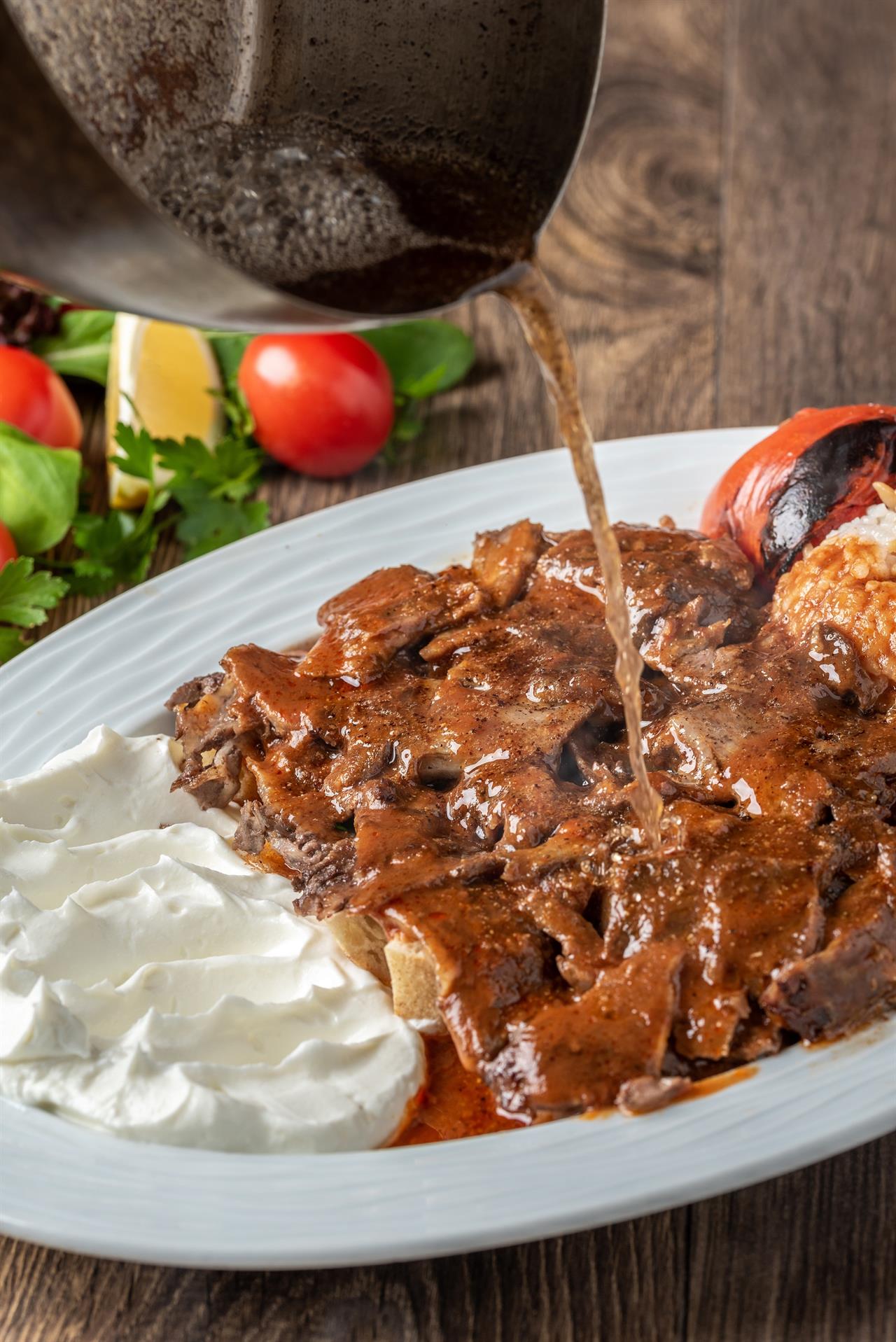 Σπεσιαλιτέ και καμάρι της πόλης είναι το Iskender Kebap, γνωστό στην υπόλοιπη Τουρκία και ως Bursa Kebap: Λεπτοκομμένα κομμάτια αρνιού, που ψήνονται κάθετα στη φωτιά (σκέψου όπως το αντικριστό) και σερβίρονται πάνω σε πίτες με σάλτσα ντομάτας και γιαούρτι, και περιχύνονται επιτόπου στο τραπέζι με μια ονειρική, αχνιστή βουτυράτη σως. Θα το βρεις σχεδόν παντού στην Προύσα, αλλά εμείς λέμε να πας κατευθείαν στην πηγή, στο İskender Tarihi Ahşap Dükkan που το πρωτοέφτιαξε, το 1867. Οι τιμές του είναι εξαιρετικές, στα 7€ η μεγάλη μερίδα, στα 4€ η μικρή.