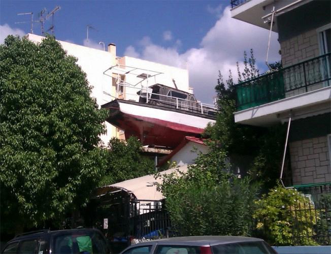 Και τέλος, σας αφήνουμε με μια όμορφη εικόνα από την Ηλιούπολη, με μια βάρκα πάνω σε ένα σπίτι, γιατί έτσι