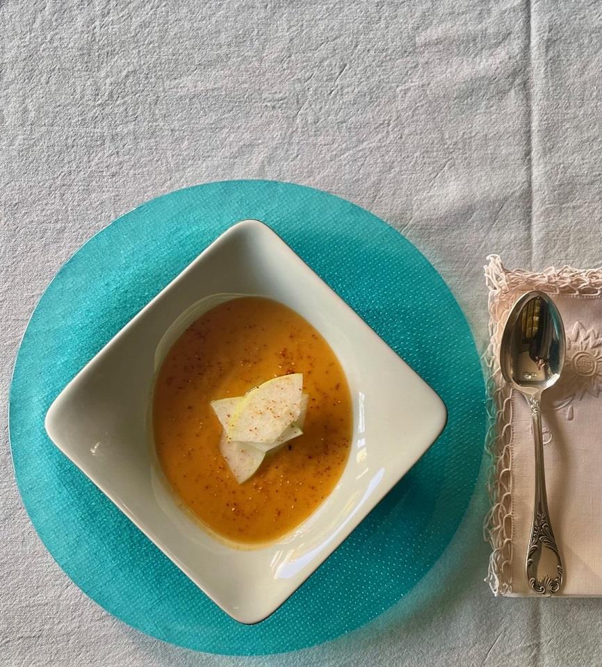 ΣΟΥΠΑ ΜΕ ΓΛΥΚΟΠΑΤΑΤΕΣ, GINGER, ΞΙΝΟΜΗΛΟ & ΓΑΛΑ ΚΑΡΥΔΑΣ