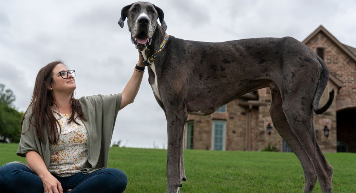 Ο Δίας, είναι ένας μεγάλος μολοσσός που μένει μαζί με την ιδιοκτήτριά του στο Τέξας των ΗΠΑ και πανηγυρίζει γιατί πήρε το βραβείο του ψηλότερου σκύλου στον κόσμο, με ύψος 1,04. Ελπίζουμε να τον χωράει ο καναπές της.