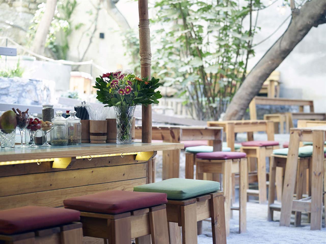 Η ευρύχωρη αυλή του ζεσταίνεται επαρκώς από σόμπες και κουβερτάκια (που όσο παίρνει να… ανοιξιάζει θα χρειάζονται όλο και λιγότερο) και έχει αρκετά μεγάλα τραπέζια που θα σας χωρέσουν άνετα όλους. Εδώ θα έρθετε από νωρίς το πρωί για καφέ, αλλά και αργότερα για νόστιμα τσιμπολογήματα, και ακόμα πιο αργά για ποτά και κοκτέιλ σαν το Poet’s Jasmine, με βότκα, γιασεμί και τζίντζερ, και το Bananajara με σοκολατένια τεκίλα και μπανάνα. Οι τιμές τους ξεκινούν από τα 8,50€.