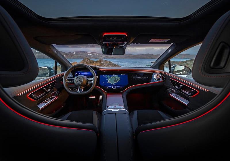 Πολλές επιλογές AMG ενισχύουν τη δυναμική εμφάνιση του αυτοκινήτου. Περιλαμβάνουν σχεδιαστικά χαρακτηριστικά όπως το AMG Night Package με στοιχεία σε μαύρο και μαύρο χρώμιο, κόκκινες δαγκάνες φρένων ή τα διακοσμητικά στοιχεία AMG από ανθρακονήματα. Το ηλεκτρικό σεντάν επιδόσεων μπορεί επίσης να βελτιωθεί περαιτέρω όσον αφορά στη δυναμική συμπεριφορά του με το κεραμικό σύνθετο σύστημα πέδησης υψηλής απόδοσης AMG. Υπάρχει επίσης μια επιλογή από αεροδυναμικά βελτιστοποιημένες ζάντες ελαφρού κράματος AMG 20 και 21 ιντσών.