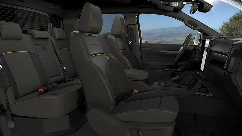 Στο εσωτερικό, οι επιβάτες απολαμβάνουν τα μοναδικά καθίσματα Miko με suede επένδυση και αποκλειστικό κέντημα Wildtrak X, που υποστηρίζεται από το μαλακό στην αφή suede Terra με ραφές αντίθεσης σε χρώμα Cyber Orange που απαντώνται στο επάνω μέρος του ταμπλό, στις επενδύσεις των θυρών και στην κεντρική κονσόλα. Η ενσωματωμένη συνδεσιμότητα με το FordPass 6 και τις υπηρεσίες Ford Pro, όπως το FORDLiive, είναι στάνταρ, αναβαθμίζοντας την εμπειρία ιδιοκτησίας.