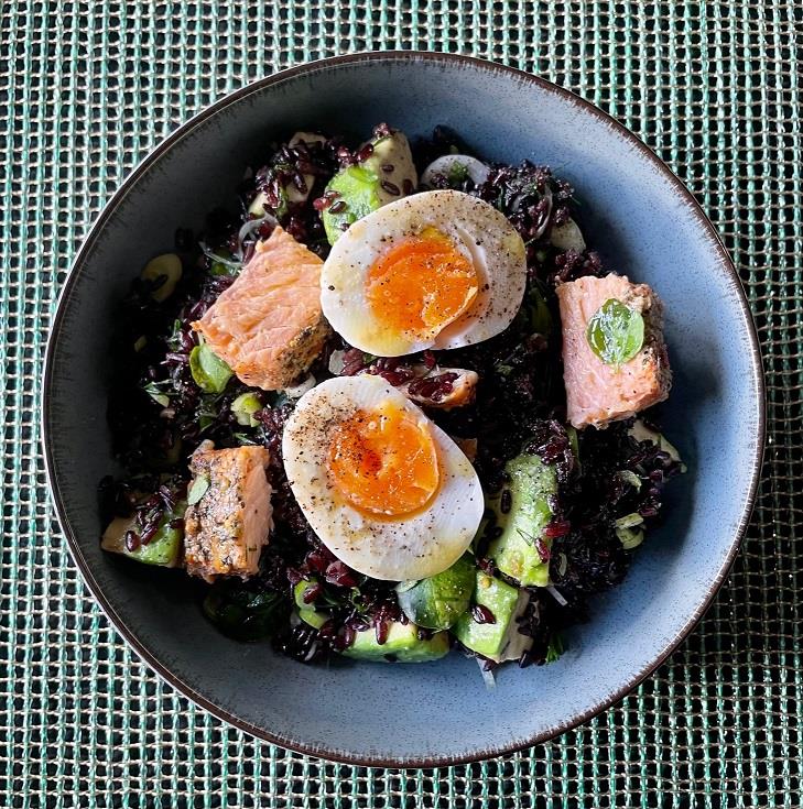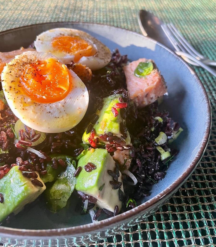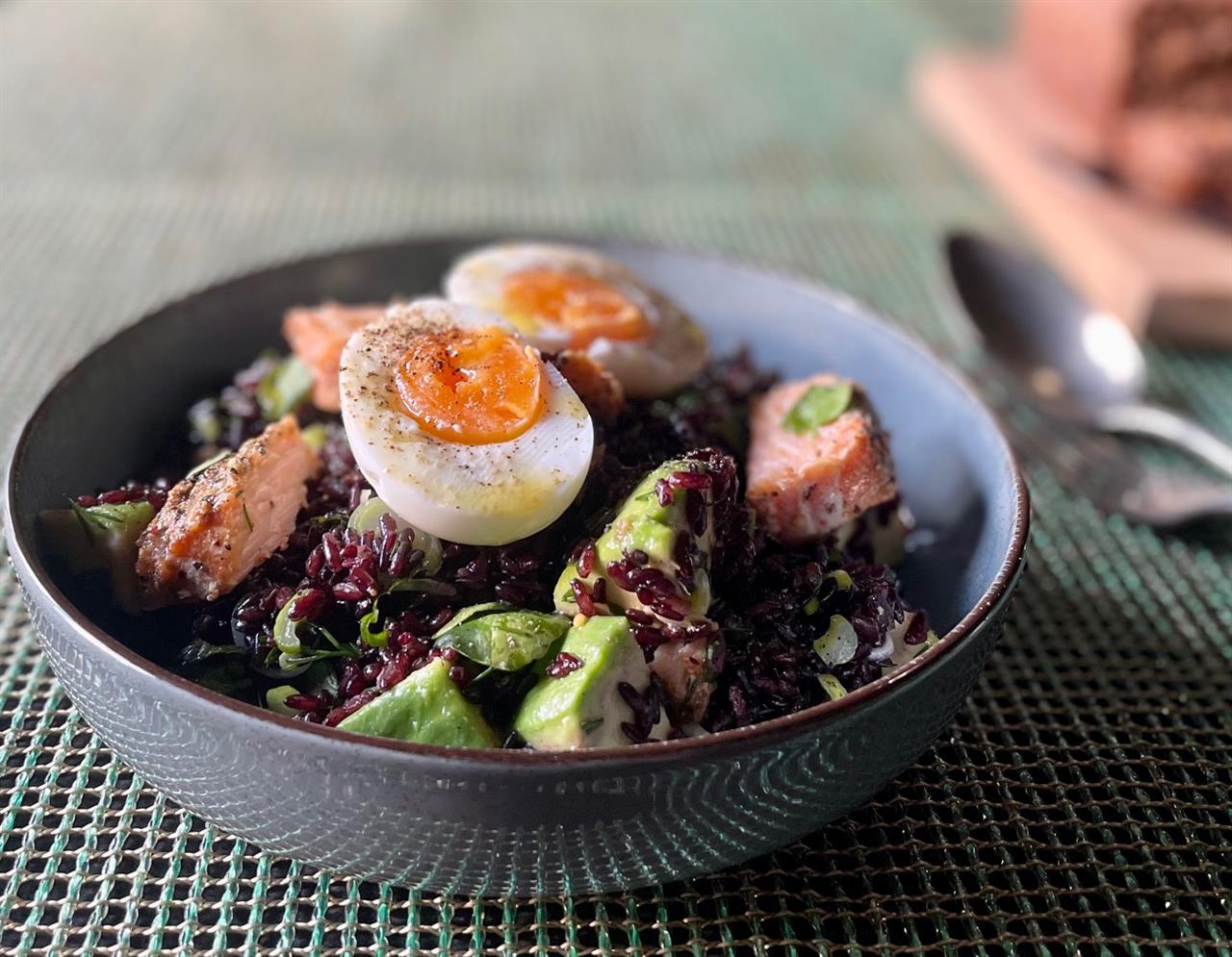 ΣΑΛΑΤΑ ΜΕ ΜΑΥΡΟ ΡΥΖΙ, ΣΟΛΟΜΟ, ΑΒΟΚΑΝΤΟ & ΑΥΓΟ