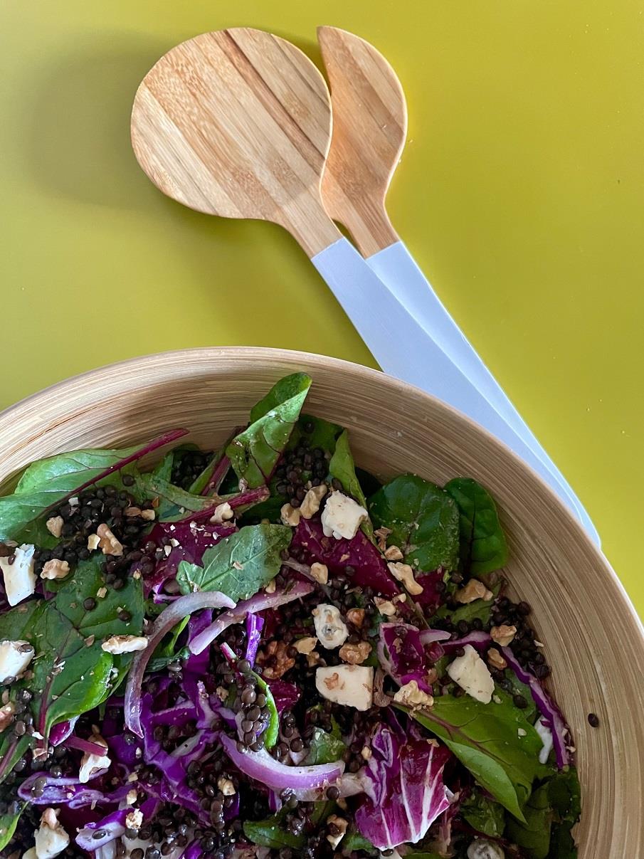 ΣΑΛΑΤΑ ΜΕ ΜΑΥΡΕΣ ΦΑΚΕΣ, ΚΟΚΚΙΝΟ ΛΑΧΑΝΟ & RADICCHIO, ΚΑΡΥΔΙΑ, ΜΑΥΡΕΣ ΣΤΑΦΙΔΕΣ & GORGONZOLA