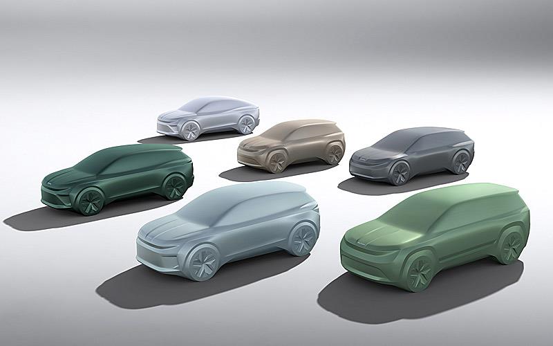 Τα Enyaq iV και Enyaq Coupé iV, κυκλοφόρησαν με επιτυχία το 2020 και το 2022 αντίστοιχα βασίζονται στην αρθρωτή πλατφόρμα για την ηλεκτροκίνηση (ΜΕΒ) του Volkswagen Group. Και τα δύο μοντέλα θα ανανεωθούν σημαντικά το 2025 για να αντικατοπτρίζουν τη νέα σχεδιαστική γλώσσα που θα χαρακτηρίζει όλα τα μοντέλα BEV της μάρκας στο μέλλον. Επιπλέον, μέχρι το 2026 θα υπάρχουν τέσσερα εντελώς νέα ηλεκτρικά οχήματα: