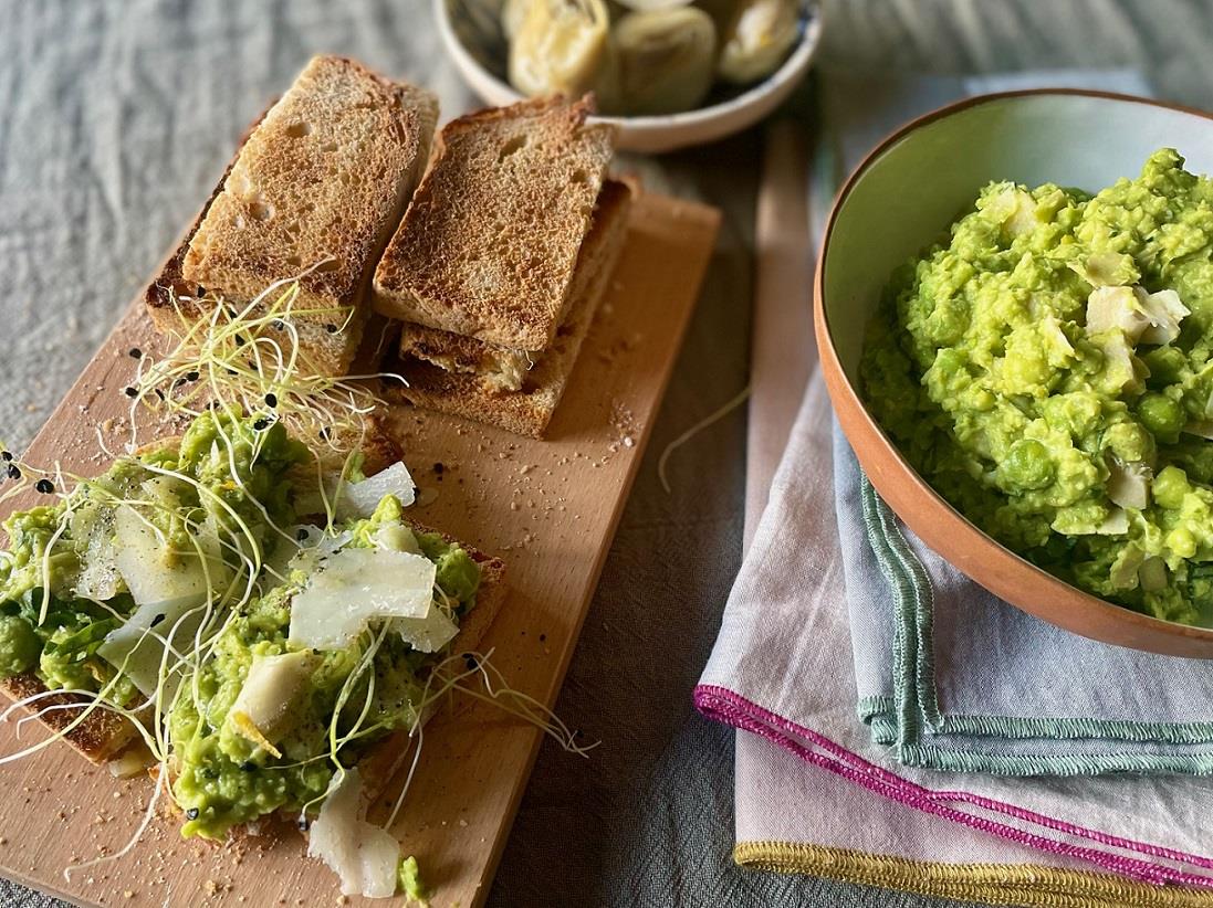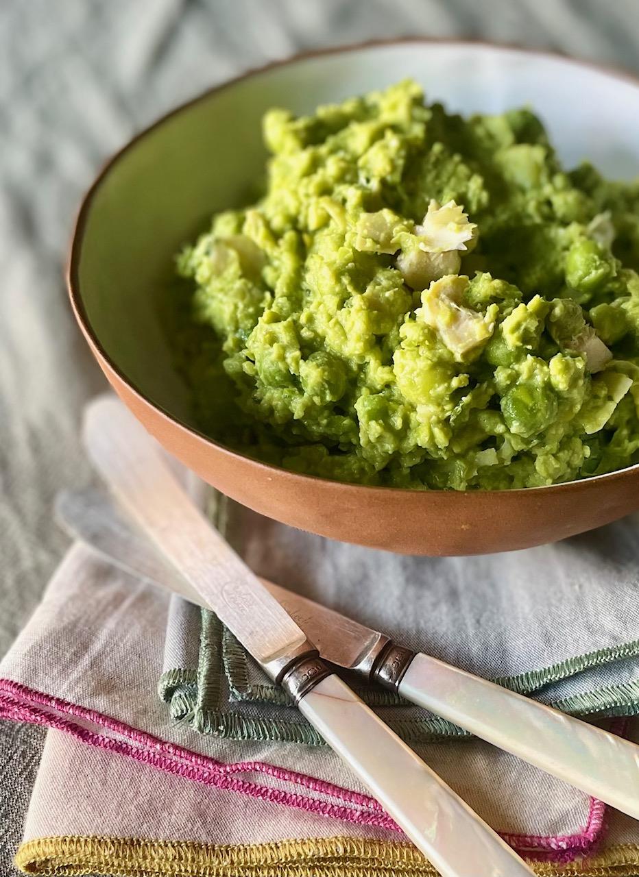 Ο γλυκός, καταπράσινος και τρυφερός φρέσκος αρακάς συνδυάζεται με τις ξυδάτες αγκινάρες σε ένα πεντανόστιμο, πρωτότυπο ορεκτικό.