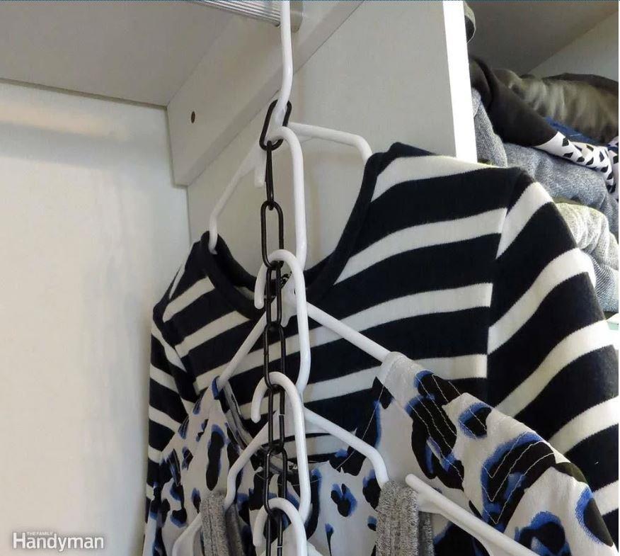 Αν η ντουλάπα σου έχει ύψος αλλά όχι πλάτος, πέρνα σε μια αλυσίδα τρεις-τέσσερις κρεμάστρες όπως στην φωτογραφία, για να εκμεταλλευτείς τον κάθετο χώρο: