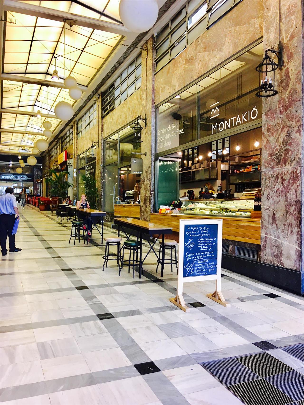 Λιγότερο στυλιζαρισμένη από την Στοά Σπυρομήλιου, αλλά εξίσου «ζωντανή», η Στοά Κοραή, στην ομώνυμη πλατεία, είναι μια μίνι… πόλη μέσα στην πόλη με τα café της να απλώνουν τραπεζάκια κάτω από τα μπαλόνια-φωτιστικά της. Στο Μόντακιου για παράδειγμα, που έχει το όνομα του τζογαδόρου κόμη John Montαgu, που θεωρείται πως επινόησε το σάντουιτς (και μπράβο του), θα φας… σάντουιτς (προφανώς) σε κάθε πιθανό συνδυασμό, και θα απολαύσεις specialty καφέδες.