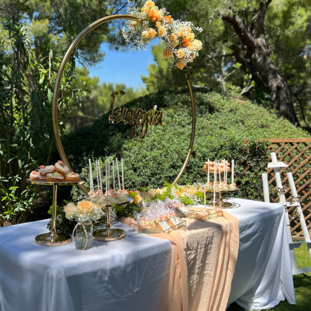 «Το μόνο που χρειαζόμαστε είναι η αγάπη. Αλλά και λίγα γλυκά κατά καιρούς, δεν βλάπτουν». Όπως δεν μπορούμε να φανταστούμε την αγάπη και τη ζωή χωρίς γλυκά, έτσι δε μπορούμε να φανταστούμε και μία βάπτιση χωρίς αυτά! Μπορεί τα κουφέτα της μπομπονιέρας να ήταν το μέχρι τώρα σύνηθες, όμως η μόδα που έρχεται να ικανοποιήσει τους… γλυκατζήδες λέγεται candy bar. Αναλαμβάνουμε τη δημιουργία candy bar, που είναι θεματικά συνδυασμένα με το στολισμό, και αφήνουν δικό τους μοναδικό αποτύπωμα στη διακόσμηση της βάπτισης, που όχι μόνο μαγνητίζει τα βλέμματα όλων των καλεσμένων, αλλά επίσης τους οδηγεί σε ένα μικρό γαστρονομικό ταξίδι!