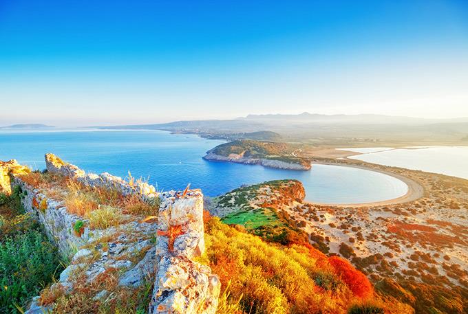 Η απόλυτη παραλία-σταρ της Πελοποννήσου, με την πουδρένια άμμο της, τα παγωμένα πρασινογάλαζα νερά της δεν θα μπορούσε να λείπει από εδώ.