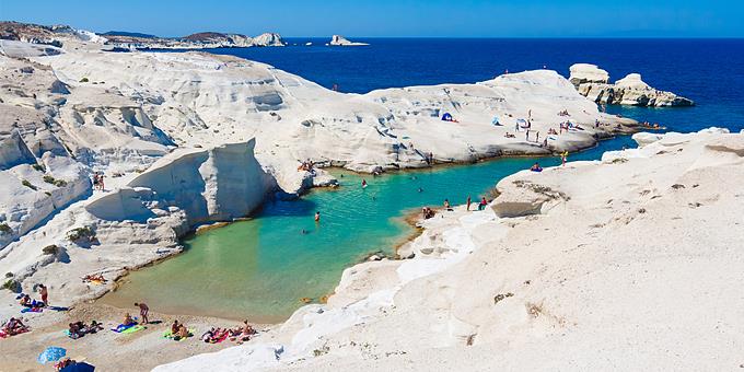 Είναι ό,τι πιο κοντινό μπορείς να κάνεις σε μια βόλτα στο φεγγάρι. Σεληνιακό τοπίο κι απόκοσμη ομορφιά στην πιο διάσημη παραλία της Μήλου.