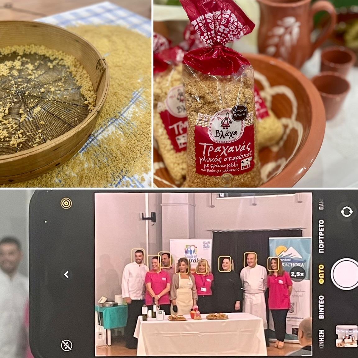 Τι γεύση έχει ο τραχανάς; Πολλές, θα έλεγα. Ξινός ή γλυκός, σούπα ή πιλάφι, σε κεφτέδες και πίτες, με βότανα, λαχανικά, τυριά και αλλαντικά, ο τραχανάς ξεφεύγει από τα κλασσικά, ξεφεύγει κι από τον χειμώνα και πάει παραπέρα, σε φαγητά σημερινά και καλοκαιρινά. Εκτός από τη νοστιμιά του έχει και υψηλή διατροφική αξία, όπως μας ανέλυσε η διατροφολόγος Σοφία Χόνδρου. Όλα αυτά μάθαμε και γευτήκαμε στην Περαχώρα από τρεις σεφ, τον Κωνσταντίνο Βασάλο, την Στεφανία Βασιλείου και τον Δημήτρη Φαρμάκη οι οποίοι μαγείρεψαν τον εξαιρετικής ποιότητας τραχανά της Κορινθιακής βιοτεχνίας «Βλάχα», ο καθένας με το δικό του, νόστιμο, στιλ.