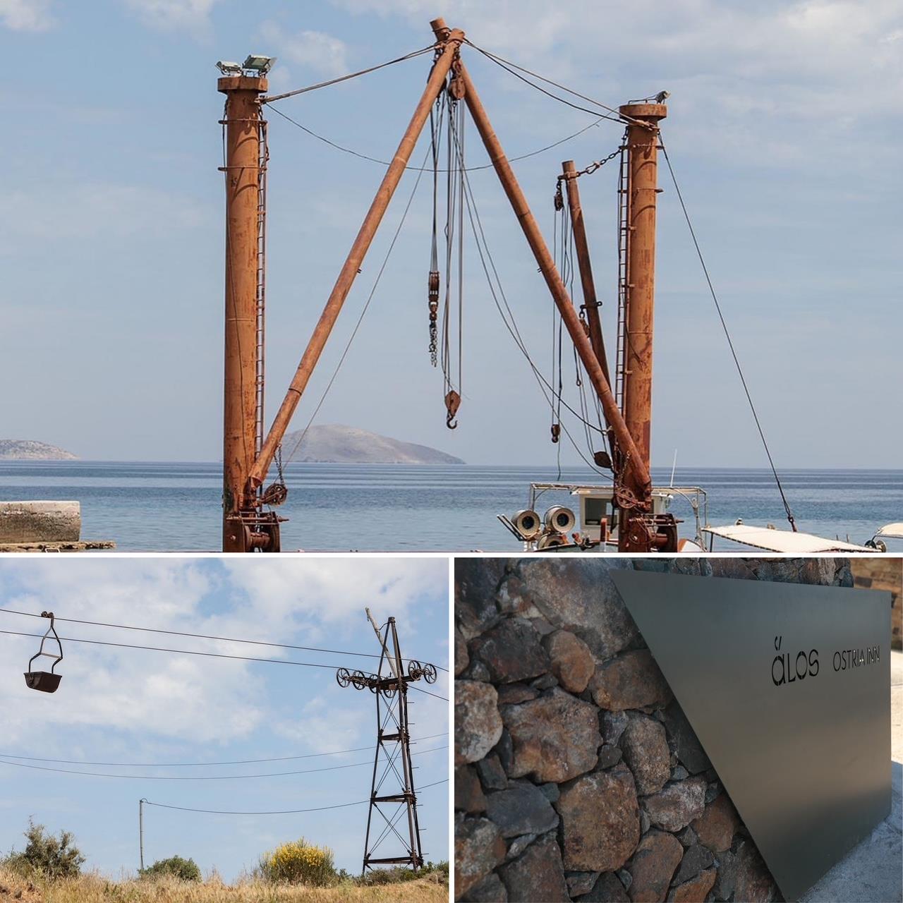 Ακριβώς έτσι αισθάνθηκα όταν πριν από δύο περίπου εβδομάδες βρέθηκα στην απόμερη παραλία της Μουτσούνας, προσκεκλημένη από το ξενοδοχείο Ostria Inn και το εστιατόριό του ἅlos που παίρνει το όνομά του από το δακτυλίδι της Σελήνης (῾΄Αλως στα αρχαία ελληνικά). Η Μουτσούνα είναι το επίνειο ενός από τα πιο όμορφα και ιστορικά ορεινά χωριά του νησιού, της ξακουστής Απειράνθου (Απεράθου στην τοπική διάλεκτο), έχει όμως κι αυτή την δική της σπουδαία ιστορία. Αυτό το μικρό ψαροχώρι υπήρξε σημαντικός κόμβος για την οικονομία της Νάξου, με δικό του μικρό λιμάνι και εναέριο τελεφερίκ που μετέφερε τη σμύριδα, ένα σπάνιο τοπικό ορυκτό που χρησιμεύει στα έργα οδοποιίας. Η παραγωγή, όμως, τις τελευταίες δεκαετίες τεχνητής σμύριδας, κι ας είναι κατώτερης ποιότητας, εξοβέλισε αυτή τη δραστηριότητα. Στη Μουτσούνα, παρόλα αυτά, υπάρχουν ακόμα το τελεφερίκ, τα βαγόνια και οι γερανοί που στέκουν σκουριασμένοι και παροπλισμένοι, δίνοντας στο μέρος κάτι το γοητευτικά απόκοσμο.