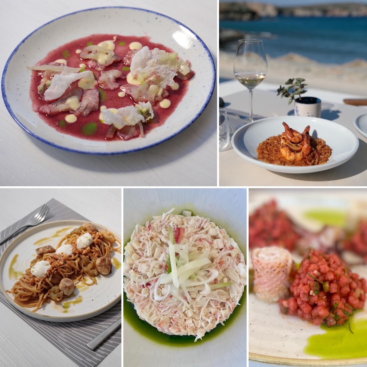 Στη συνέχεια η θάλασσα πρωτοστατεί στο μεγαλύτερο μέρος του καταλόγου. Το σπαρταριστό λεπτοκομμένο ψάρι «ψήνεται» σε χυμό από φραγκόσυκα, ερμηνεύοντας σε άψογα Ελληνικά τον όρο ‘ceviche’, ή ψήνεται και συνοδεύεται από τσιγαριαστά χόρτα με ψιλοκομμένη ντομάτα. Το καλαμάρι ψήνεται και συνοδεύεται από κουσκουσάκι ζυμωμένο με παντζάρι, το καβούρι γίνεται δροσερή κι ένα τσικ καυτερή σαλάτα με ξινόμηλο. Άλλα θαλασσινά «παίζουν» με ζυμαρικά: Τα linguine με χτένια, ταρτάρ γαρίδας, μους από γραβιέρα Νάξου και μοσχολέμονο μου πήραν κυριολεκτικά τα μυαλά από τις αλλεπάλληλες «κόντρες» μεταξύ της γλύκας των θαλασσινών, της αλμυρής νοστιμάδας του τυριού και του φίνου αρώματος του εσπεριδοειδούς. Το όμορφα μελωμένο και χυλωμένο κριθαράκι, ελαφρά ντοματένιο και φίνα αρωματισμένο με σαφράν, κάνει παρέα στις έξοχα ψημένες γαρίδες που από τη μια αποκτούν ελαφριά κάψα από το τσίλι, ενώ από την άλλη δροσίζονται με πορτοκάλι. Ο επίσης έξοχα μαγειρεμένος αστακός που σερβίρεται με linguine αφήνει την πρωτοκαθεδρία στη βαθιά νοστιμιά της μπισκ, ενώ η ντομάτα είναι τόση, ώστε να μην καπελώνει τη φινετσάτη σάρκα του οστρακόδερμου. Τα κρέατα, περιποιημένα και σιτεμένα από τον πατέρα Γιάννη, «μιλάνε» τη γλώσσα του τόπου και σερβίρονται στην πιο κλασική τους εκδοχή. Για τα επιδόρπια μην με ρωτήσετε γιατί, μετά από τέτοιο τρικούβερτο τσιμπούσι, το μόνο που μπόρεσα να καταπιώ ήταν μια κουταλιά παγωτό μαστίχα.