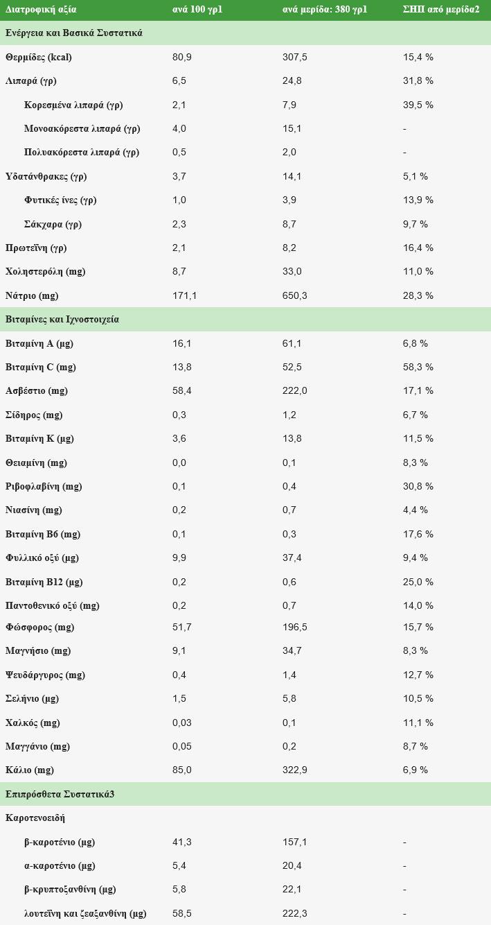 Δες παρακάτω τον αναλυτικό διατροφικό πίνακα για τη χωριάτικη (πηγή: foodforhealth.gr)