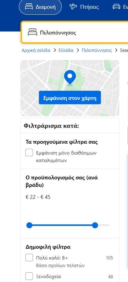 Στην επόμενη σελίδα, στην αριστερή στήλη υπάρχει μια μπάρα που γράφει «Ο προϋπολογισμός σας (ανά βράδυ)». Πιάνεις τη δεξιά της άκρη και την σέρνεις ώσπου να κατέβει στο μάξιμουμ της τιμής που μπορείς να πληρώσεις: