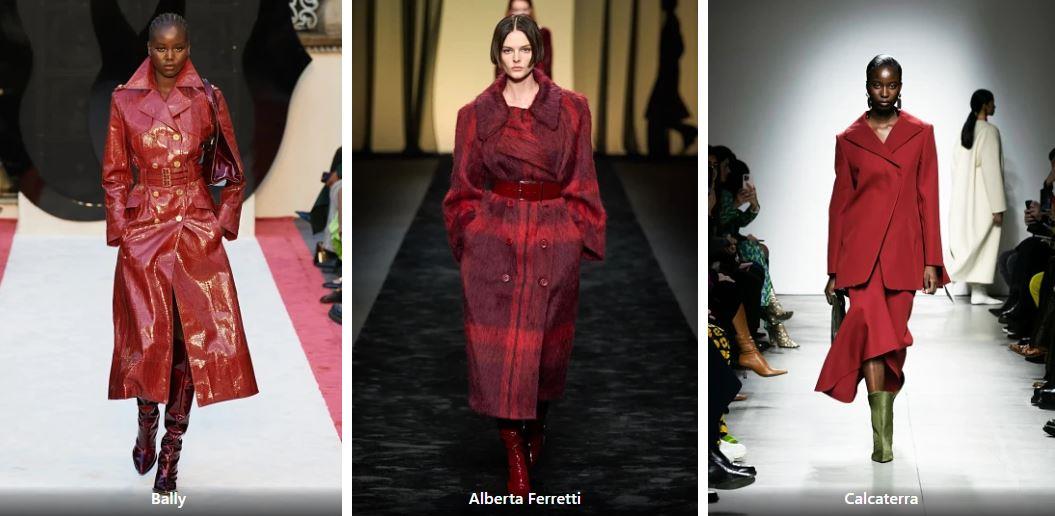 Σέξι και αισθησιακό, το Φλογερό Κόκκινο δημιουργεί ενθουσιασμό. Το Fiery Red είναι ιδιαίτερα σαγηνευτικό και αισθησιακό, παρέχοντας μια ισχυρή ενέργεια στα ρούχα. Για παράδειγμα, η Ferragamo πρότεινε γούνινα παλτά και προσαρμοσμένα κοστούμια με έντονο οπτικό αντίκτυπο. Ο David Koma, από την άλλη, επέλεξε να ενισχύσει τον αισθησιασμό του φλογερού κόκκινου, χρησιμοποιώντας το λουλούδι Anthurium για να διακοσμήσει μίνι φορέματα, τοπ και γάντια.