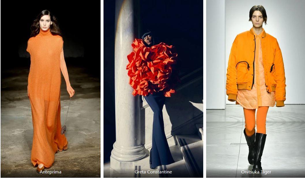 Το κόκκινο πορτοκαλί είναι ένας λαμπερός πορτοκαλί τόνος που είναι ζωντανός, αυθόρμητος και γεμάτος αυτοπεποίθηση. Αυτή η σαγηνευτική απόχρωση του πορτοκαλί έχει κυριαρχήσει σε πολλές επιδείξεις μόδας και θα είναι δημοφιλής την φετινή σαιζόν.