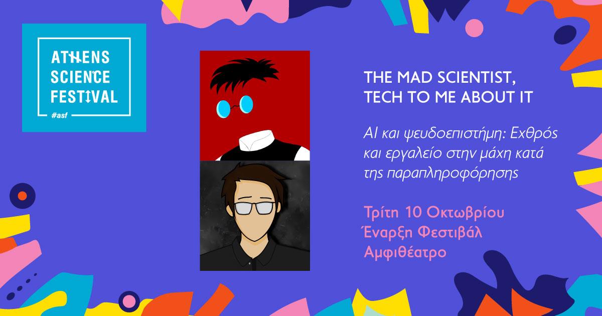 Στην τελετή έναρξης του φετινού τριημέρου επιστήμης και καινοτομίας, το απόγευμα της Τρίτης 10 Οκτωβρίου, οι ειδικοί στην επικοινωνία της επιστήμης και εξαιρετικά δημοφιλείς YouTubers «Mad Scientist» και «Tech to me About it», θα βρεθούν στην ίδια σκηνή για να μας παρουσιάσουν μια ενδιαφέρουσα συζήτηση με τίτλο «AI και ψευδοεπιστήμη: Εχθρός και εργαλείο στη μάχη κατά της παραπληροφόρησης». Τι μπορεί να προκύψει στη μοναδική αυτή συνάντηση;