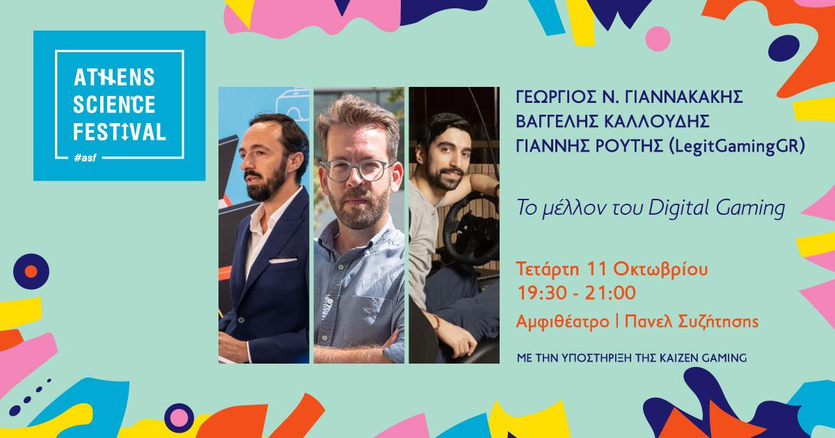 ● Στο πάνελ συζήτησης «Το μέλλον του Digital Gaming» ο Γεώργιος Ν. Γιαννακάκης (Καθηγητής και Διευθυντής του Ινστιτούτου Ψηφιακών Παιχνιδιών Πανεπιστημίου Μάλτας και Συνιδρυτής της εταιρείας modl.ai), ο Βαγγέλης Καλλούδης (Senior Product Manager της Kaizen Gaming) και ο Γιάννης Ρούτης (LegitGamingGR) θα μας μιλήσουν για το μέλλον του ψηφιακού παιχνιδιού και θα ανακαλύψουμε τις επαγγελματικές ευκαιρίες και δυνατότητες που προσφέρονται. Η δράση πραγματοποιείται με την υποστήριξη της εταιρείας Kaizen Gaming.