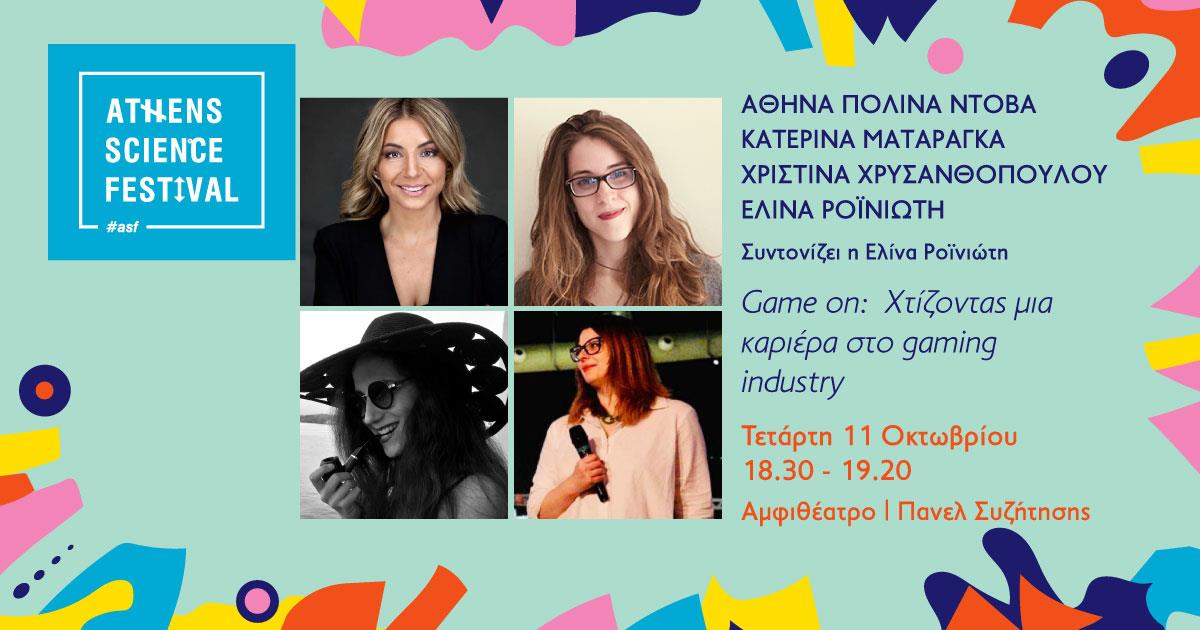 ● Στο πάνελ συζήτησης με τίτλο «Game on: Χτίζοντας μια καριέρα στο gaming industry» τέσσερις κορυφαίες επαγγελματίες και ερευνήτριες θα μας μιλήσουν για την πορεία τους στον κλάδο. Η Αθηνά Πολίνα Ντόβα, η Κατερίνα Ματαράγκα και η Χριστίνα Χρυσανθοπούλου, υπό το συντονισμό της Δρ. Ελίνας Ροϊνιώτη, θα μας πουν πώς πέτυχαν σε έναν ανδροκρατούμενο χώρο και θα ανακαλύψουμε πώς μπορούμε να φτάσουμε στον στόχο μας – ανεξαρτήτως του σημείου εκκίνησης.